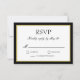 Black and white with a touch of gold classic wedding RSVP response card. Elegant block and script text within a black and shade of gold border. Black back.