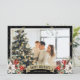 Celebrate the winter holidays with this black photo holiday card featuring a watercolor painting of poinsettia, holly and red berries. Easily personalize this holiday card with your photo and text.