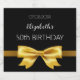 Elegant, classic, glamourous birthday label. Faux gold coloured bow. Black background. Personalise and add the date, name and age/event.