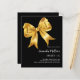 A classic black background, decorated with a large golden bow. Personalise and add a name and party details.