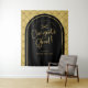 Create an elegant and trendy photo backdrop for your graduation party. Design features "Congrats Grad" in a modern handwritten script and a black arch atop a background of a geometric bow pattern. Personalise the template to customise with a class year and graduate's name. © Kimbellished, LLC