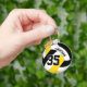 This personalized volleyball keychain features a black, yellow and white volleyball upon which you can customize the player's name and jersey number - by katz_d_zynes