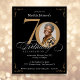 Black Gold Budget Photo 70th Birthday Invitation. An elegantly designed special birthday celebration invitation, featuring a custom photo of birthday person and script calligraphy with vintage flourish elements. Simple enough to fit a variety of themes and colours!