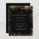 A modern, elegant wedding reception invitation. Black background decorated with faux gold glitter sparkles. Personalise and add your names and wedding details. White coloured letters.
