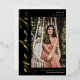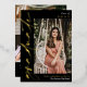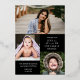 Elegant black and gold graduation invitation personalized with one photo on the cover and three more photo on the back. Double sided graduation invitation printed with gold foil against a stylish black background. 2 in 1 graduation announcement and invitation personalized with photos and the graduate's name in gold foil.