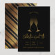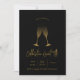 Elegant black and gold celebration invitation card featuring two sparkling champagne glasses clinking together. The design combines a sleek black background with shimmering gold text and accents, creating a luxurious and festive atmosphere perfect for upscale events, parties, or special occasions.