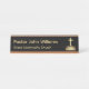 This personalised name plate perfect for a church office has a gold Christian cross against a black background. Makes a wonderful gift for a pastor, church administrator...