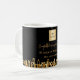 A black background, with a faux gold city skyline as decor. Personalise and add your business logo and a text on front. Golden letters