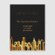 An elegant and minimalist moving annoucement magnet card from a city life. Black and faux gold with a city skyline. Personalise and add your new address to your family and friends.