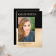 Personalised black and gold Class of 2024 graduation announcement photo flat card. Personalised with 2 photos, graduate's name, school name, and graduation year. The note on the back can talk about your graduate's accomplishments in high school and/or their plans for the future. It can include information about the graduation ceremony or an invitation to your graduation party.