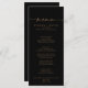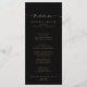 This black gold classic wedding dinner menu card is perfect for a modern wedding. The simple and elegant design features classic and fancy script typography in burnt gold.