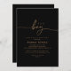 This black gold classic it's a boy baby shower invitation is perfect for a modern baby shower or sprinkle. The simple and elegant design features classic and fancy script typography in gold.