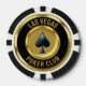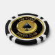 Black and gold coin las vegas poker club poker chip with spade and customisable text. Personalise it with the name of your poker club.