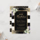 Elegant black and white striped floral 30th birthday invitation featuring a gold frame decorated by gold confetti, calla lilies and greenery.