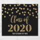 Class of 2020 graduation bottle label in black and glamourous gold confetti pattern.
