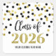Custom name class of 2026 graduation stickers with gold and black confetti pattern with modern lettered style text.