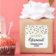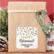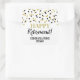 Happy retirement favour tag sticker with black and gold confetti pattern.
