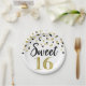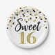 Black Gold Confetti Sweet 16 Birthday Party Paper Plate