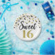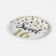 Custom sweet 16 birthday party plates with black and gold pattern confetti.