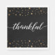 Add this touch of modern sophistication to your napkins. The word "Thankful" in a simple script handwritten style font with long tails on black with faux gold print confetti. A trendy and chic look. Try it for special holidays like Thanksgiving and Christmas, corporate events.
