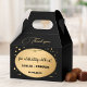 Wedding favour box featuring a stylish gold and black art deco design with sparkling gold confetti. Beautiful for a wedding and customisable for any other occasion.
