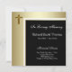 Elegant black and gold cross In Loving Memory man or womans funeral and memorial service announcements and inserts. You can make the cross smaller or larger, move it to a different location, or delete it by simply choosing the "Customise it!" button to begin adding your event details, font style, font size & colour, and wording. Please note - all of the stickers, cards and invitation designs you will find on Zazzle are printed graphics with no actual jewels, bows, raised, embossed, or added parts or pieces.