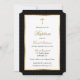 Black Gold Cross Polka Dots Elegant Script Baptism Invitation