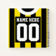 This design is an soccer (football) / rugby / sports style jersey with buttoned collar, and black and yellow stripes, you can also add your own logo or text to the front, just click on 'CUSTOMIZE'.