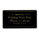 Chic wedding mini wine labels ready for you to personalise with your own information. Elegant black with gold tone accent lines, on the top and bottom of this horizontal label. Graphics of a gold tone elegant flourish, at the top, and custom golden yellow text below it. Personalise the text for your wedding reception. Great for your wedding reception table or guest favours.