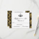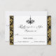 This elegant formal ballroom chandelier black and white with gold damask pattern rsvp card has a Baroque Victorian in FAUX gold damask border on it that matches the 50th wedding anniversary invitation shown below. All the text is customisable, and so are the paper choices. ****PLEASE NOTE that the metallic gold paper is a very dark brassy gold and it will alter the colours of the design severely, so I do NOT suggest using that paper. It is shown here on basic paper, but it would sparkle extra nicely on metallic ice paper, which has a subtle opalescent sheen to it. The felt paper is a nice thick, textured paper that would also give luxurious results. Linen will cool the design down and is a light-weight paper with thin lines running across it. Delicate paper is VERY thin and semi-transparent like vellum, so I don't suggest ordering that or the grooved paper. ALSO, if you change fonts or font sizes, your text may not fit properly any more. Zazzle will not edit anything for typos, alignment, or anything else, and I will not see your invitation. Everything will print as it appears on your monitor. If you need help with the invitation, please contact me BEFORE you order it. This invitation is designed to fit the 5x7 size card. If you change to another size, the design will no longer fit properly, so if you want a different size, please contact me so I can re-design it for you. If you require any other matching items in this design, please email your request to niteowlstudio@gmail.com.
