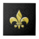 Black/Gold Damask Fleur de Lis Ceramic Tile