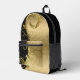 Black Gold Damask Gold Swirls Printed Backpack
