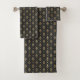 Modern Black and Gold Damask Pattern Bath Towel Set.