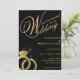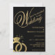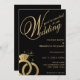 Elegant black and gold wedding invitation with shiny diamond ring. Personalise it with your event details.
