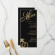 Elegant black and gold wedding reception menu with shiny diamond ring. Personalise it with your event details.