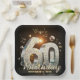 Celebrate a milestone sixtieth birthday in style with this elegant retro music themed paper plate. Featuring a dazzling 3D silver disco ball number 60, floating gold music notes, and stylish typography set against a glowing black background. Perfect for a 1970s retro dance party, a musician's milestone celebration, or a glamorous black and gold birthday event. Easily edit the name, occasion, and date to match your specific party details and bring your disco theme party to life!