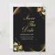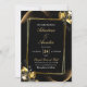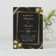Design features a dramatic black background enhanced with luxurious gold accents and modern geometric framing, paired with elegant metallic floral details for a sophisticated look. This black and gold floral wedding invitation creates a timeless and upscale aesthetic, perfect for formal weddings, evening events, and glamourous celebrations. Personalise to create stunning custom invitations for your special day.