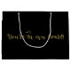 Stylish classic gift bag. The inscription of gold colour on a dark background looks graceful.
