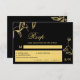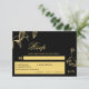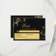 Moody black and faux gold classy vintage antique romantic wedding invitation RSVP card with meal choice botanical foliage branches and elegant classic calligraphy script. +++++++++ Easy to personalise with your details!