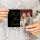 Modern Black and Gold Elegant Script Photo Simple Wedding Thank You Postcard. Express how thankful you are to your friends and family who made your wedding an extra special with this beautiful wedding photo thank you card. All the texts are pre-arranged for you to personalise easily and quickly with your own words.