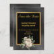 Metallic black gold embossed trim Simple and Elegant Save the Date Card customisable and custom design with pretty floral elements. Pretty for any occasion