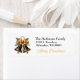 These festive Christmas return address labels feature a pair of black and gold decorative bells hanging from a pretty gold bow and pine needles. Your name and address is at the right in easy to read black, and there's an additional text field at the bottom in gold for your greeting. Elegant!