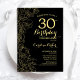 Black Gold Floral 30th Birthday Party Invitation. Minimalist modern design featuring botanical outline drawings accents, faux gold foil and typography script font. Simple trendy invite card perfect for a stylish female bday celebration. Can be customized to any age. Printed Zazzle invitations or instant download digital printable template.