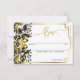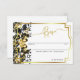 Black Gold Floral Geometric Monogram Back Wedding RSVP Card