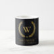 BLACK GOLD FLORAL LAUREL WREATH INITIAL MONOGRAM COFFEE MUG