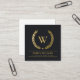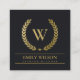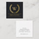 BLACK GOLD FLORAL LAUREL WREATH INITIAL MONOGRAM SQUARE BUSINESS CARD