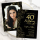 Black Gold Floral Photo 40th Birthday Party Invitation
