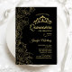 Black Gold Floral Quinceanera Birthday Party Invitation. Minimalist modern design featuring botanical outline drawings accents and typography script font. Simple trendy invite card perfect for a stylish female 15th bday celebration. Can be customised to any age. Printed Zazzle invitations or instant download digital printable template.