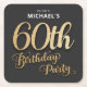 Black Gold Foil 60th Birthday Party Square Paper Coaster
