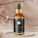 This elegant product label for body oil bottles features a black background with a faux gold foil border. This label contains space for your logo, business name, product weight, ingredients, instructions, social media, and business address. This label measures 3.75 inches by 2 inches (95 mm by 51 mm) and is suitable for bottles with a diameter of 1.2 inches (31 mm) or more such as 4 oz (120 ml) bullet, cylinder, and boston round bottles. It can also be used for cosmetic jars and other types of cosmetics packaging.